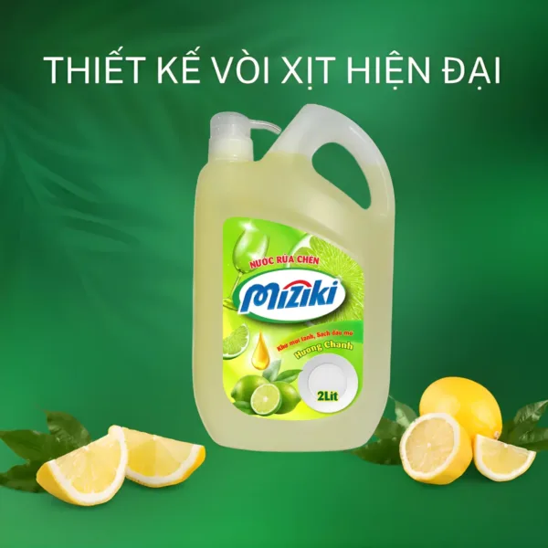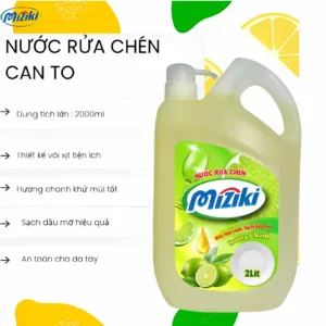 Nước rửa chén bát MIZIKI Hương Chanh 2000ml – công thức đậm đặc, hương chanh tươi mát, giúp đánh bay dầu mỡ, khử mùi tanh, diệt khuẩn hiệu quả. Với thiết kế chai 2 lít kèm vòi xịt tiện lợi, bạn dễ dàng lấy dung dịch mà không lo lãng phí.